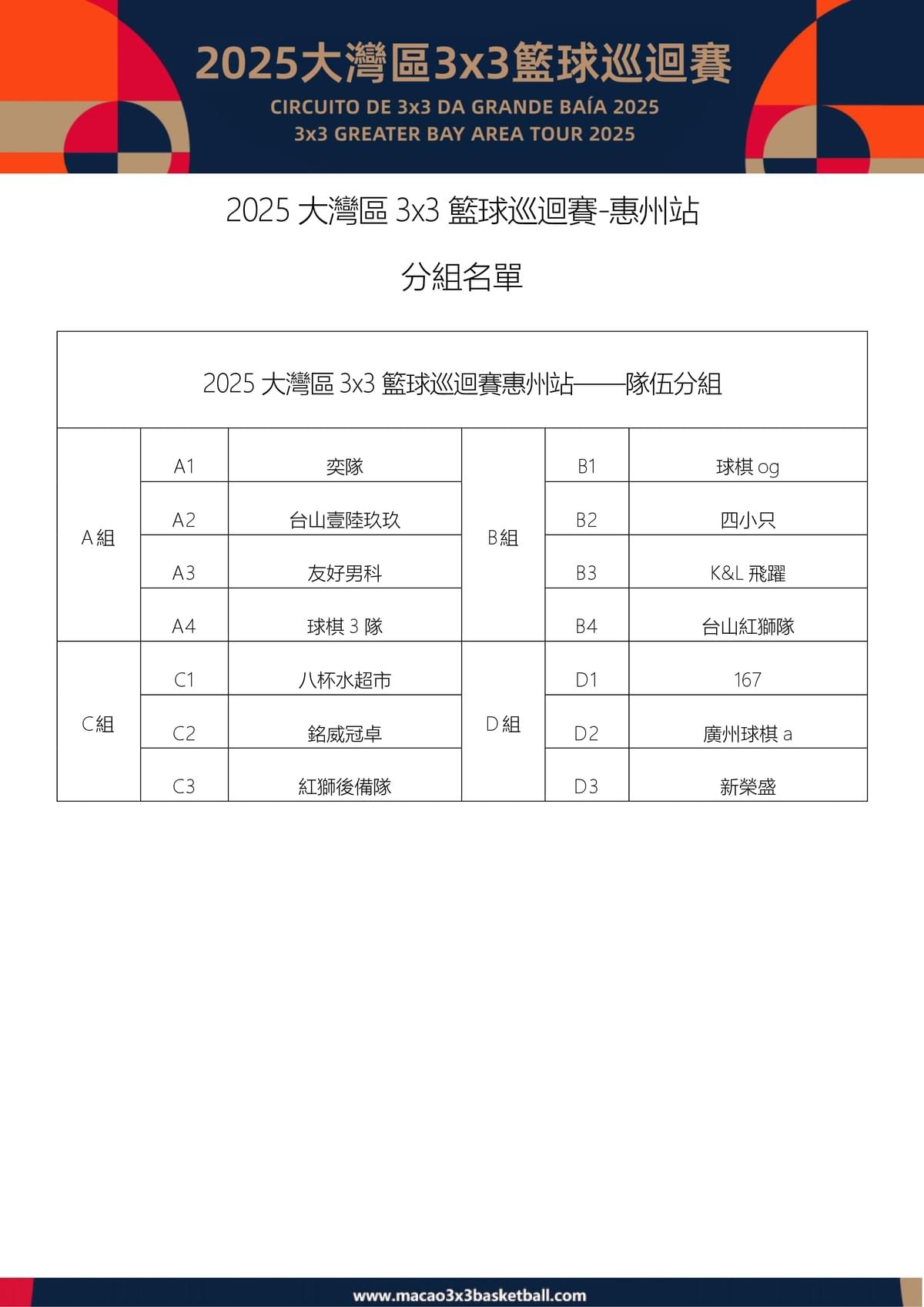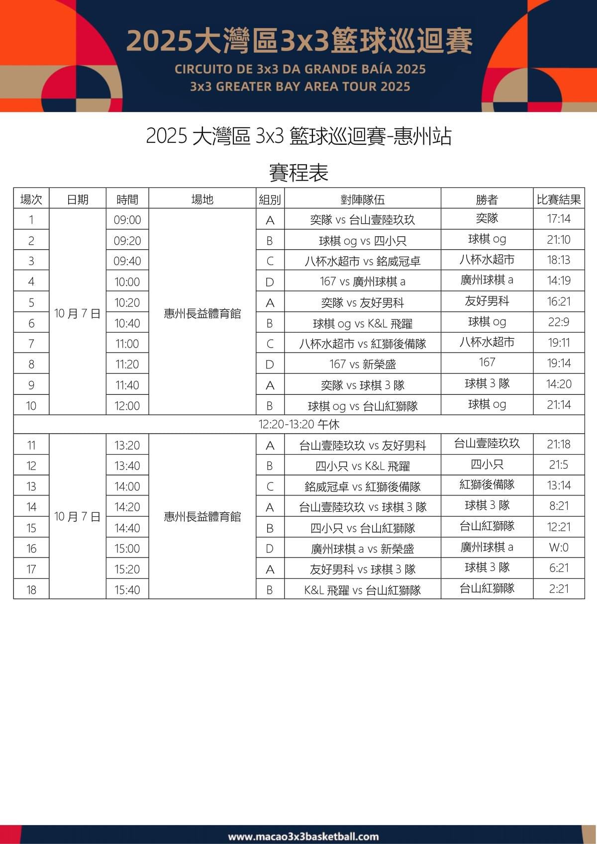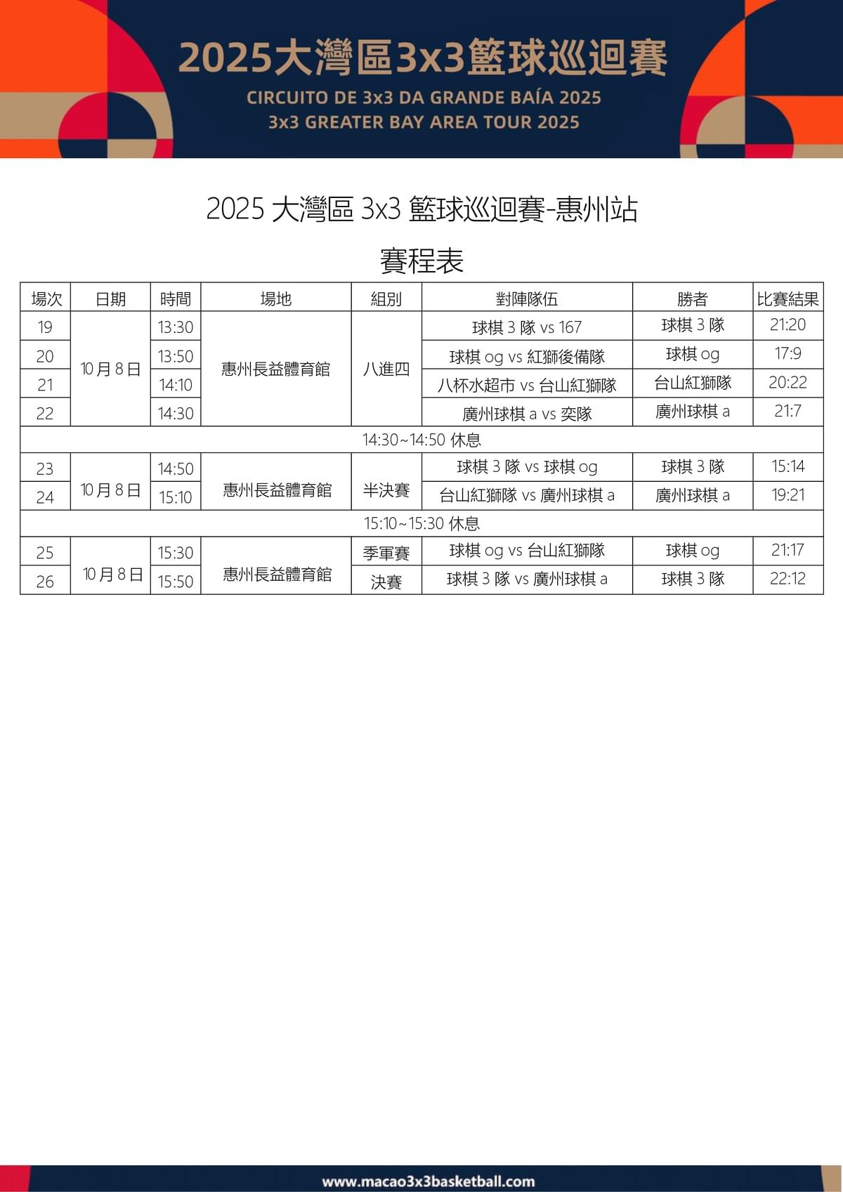 惠州站賽程